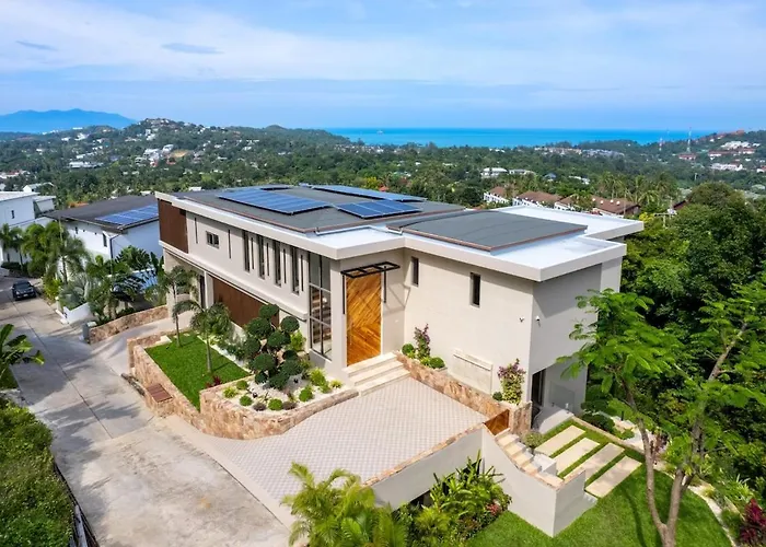 Vila Villa Aurora Signature 5 Star 6Br Sea View Ko Samui se nachází blízko Samui Sauna, nabízí terasu, a také soukromý plavecký bazén. Univerzita Rajabhat je 6 km od tohoto ubytování typu vila, zatímco Pláž Choeng Mon je vzdáleno jen 1 km.